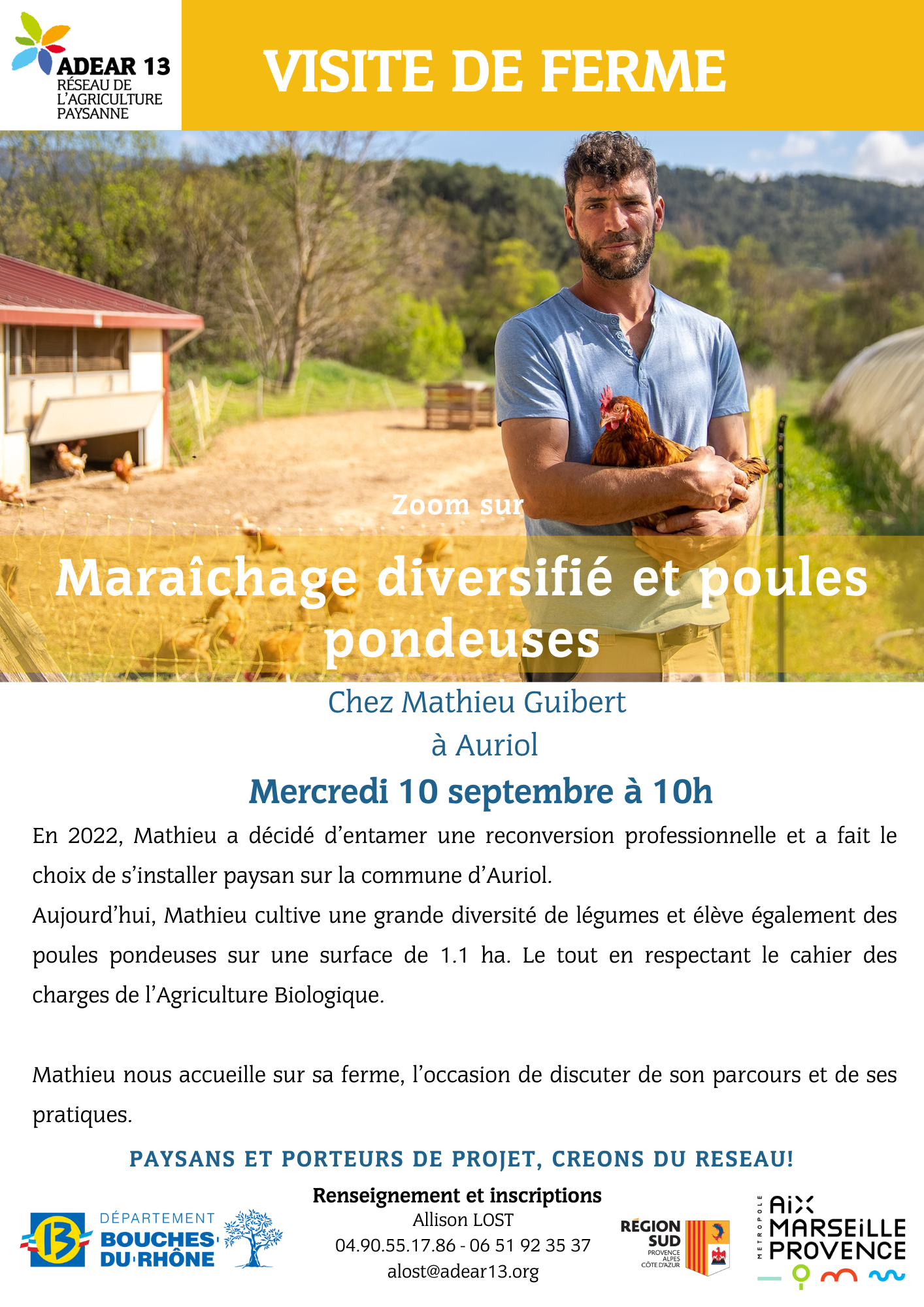 L’ADEAR souhaite créer des temps d’échanges entre paysan.nes et porteurs de projet. Les visites de ferme sont l’occasion d’échanger autour d’une thématique précise choisie en amont avec le paysan ou la paysanne qui accueille sur sa ferme comme, par exemple, "la vente aux restaurateurs", "le maraîchage sur petite surface", "installer son laboratoire de transformation" ...